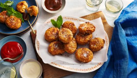 Add half the nuggets to the pan and cook for 3 minutes on each side until golden and crisp. Transfer to a plate lined with kitchen paper while you cook the remaining nuggets. Serve hot with barbecue sauce, mayonnaise or ketchup.