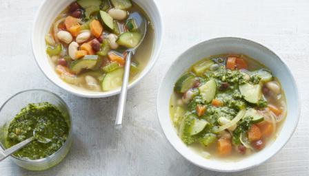 Bean soup with vegan pesto
