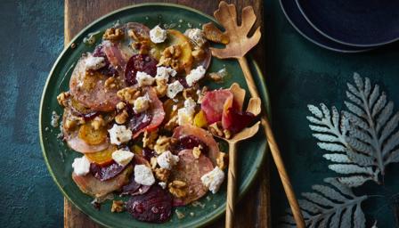 Using ready-cooked, vacuum-packed beetroot makes this salad super quick to rustle up, but you could also cook a variety of colours of beetroot to make it really pretty.