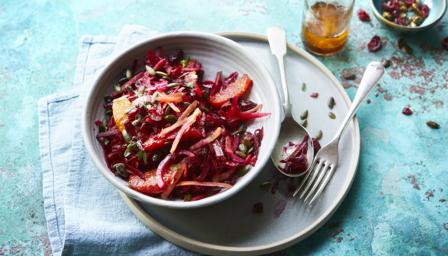 Carrot and beetroot slaw with orange dressing