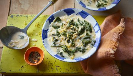 Cavolo nero, spinach, orzo and lemon soup