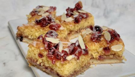 Cherry Bakewell traybake