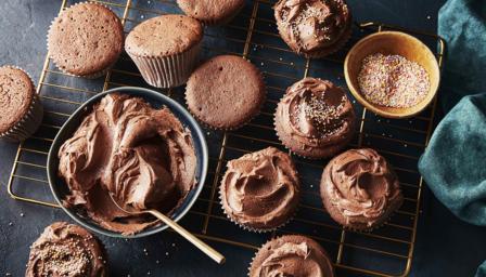 These chocolate fairy cakes could not be easier. They have a really light, chocolatey crumb that's great for kids because it's not too bitter or too rich, and the chocolate buttercream icing is a doddle. You can focus on the decorations - bring on the sprinkles!