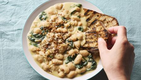 Creamy cheesy butter beans with Parmesan crumb