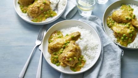 You can freeze the whole curry with the chicken but don’t add the peas, these can be added when you reheat the curry.