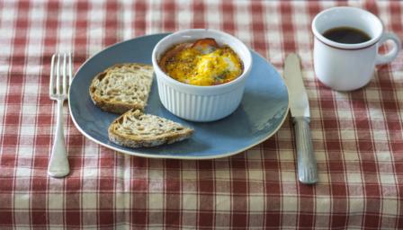 Breakfast in a pot – these baked eggs are super-quick to make and cook!