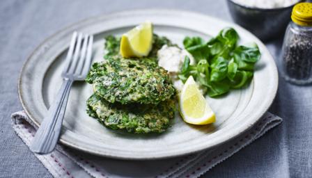 Kale, pea and ricotta fritters
