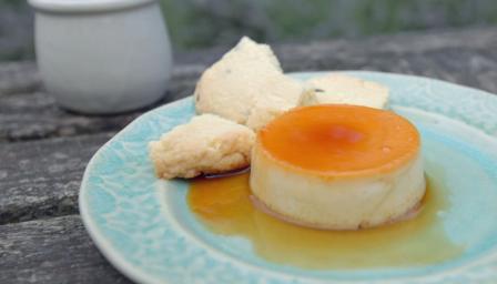 To serve, remove the crème caramels from the ramekins by running a knife around the inside of each, then pressing the knife gently into one side of the crème caramels, and inverting the ramekins onto upturned serving plates. Serve with pieces of the shortbread alongside.