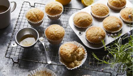 Combine the glaze ingredients straight away, then use a pastry brush or a teaspoon to cover the tops of the muffins. Repeat until all the glaze has been used. Lift the muffins onto a wire rack to cool a little, before eating warm or at room temperature.