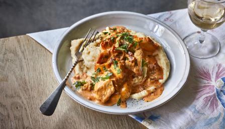 Is there anything more comforting than creamy chicken with cheesy mash? This delicious dish suggests not.