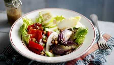 To serve, mix all the salad ingredients in a bowl, season with salt and freshly ground black pepper, then toss in the French dressing.