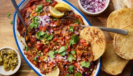 If making ahead or batch cooking for the freezer, prepare the bhaji as directed and leave to cool completely before transferring to freezer-safe containers. Don’t add the garnishes at this stage, just prepare these when you want to serve it. Freeze for up to 3 months. Defrost at room temperature and heat through thoroughly before serving. You can reheat the vegetable bhaji in the microwave or in a saucepan, but ensure it is covered as it can bubble up and splutter. Serve with the freshly toasted buns and the garnishes as in the recipe.
