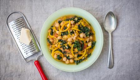 This gluten-free, vegetarian soup uses spaghetti-like strands of butternut squash instead of pasta for a healthy take on a classic minestrone.