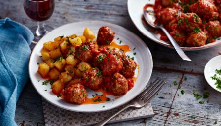 Certainly more-ish, these Spanish lamb meatballs are made with lots of spices and served with crunchy patatas bravas.