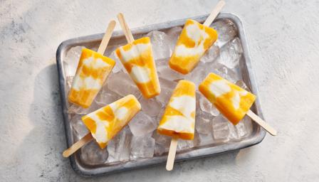These easy-to-make ice lollies taste like fresh peaches and cream, but use convenient tinned fruit and healthier natural yoghurt. Share with the family on a hot summer afternoon for smiles all round!