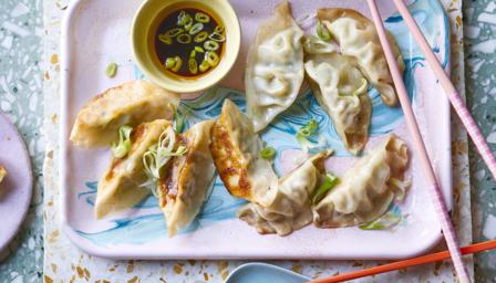 Surprisingly easy to make, these Chinese-style potsticker dumplings have a tasty chicken filling; served with a tangy dipping sauce, they’re irresistibly moreish.