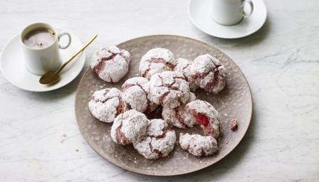 Nadiya's chewy, almond and raspberry amaretti have a fresh raspberry hidden in the middle. They make a lovely gift, but are best eaten straight away.