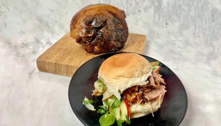 Serve up Georgina Hayden’s tender roasted pork shoulder with crispy crackling and slaw for a celebratory winter feast.
