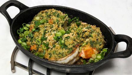 This casserole is a speciality of Chicago and can be served as a starter or main course. Think, sherry-infused prawns covered with zesty lemon breadcrumbs.