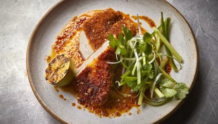 Justin coats quick-cooking butterflied chicken breasts in a crispy panko crumb with plenty of spice. Add chilli garlic butter for a decadent, spicy treat.