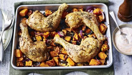Try this chicken leg traybake for maximum flavour, minimum fuss! Roast everything in one tin with some herbs and garlic and you've got a very easy meal for four.