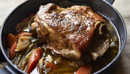 Lamb shoulder is an easy going cut that benefits from low, slow cooking. After five hours in the oven you will be rewarded with fall off the bone tender meat and a rich sauce. Serve as part of a roast dinner.