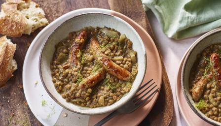 Fennel and pork are a lovely combination in this slow cooker sausage and lentil stew. Healthy lentils add extra fibre and protein. You don’t need anything with this, but, if you do fancy something on the side, try some crusty bread to mop up the sauce.