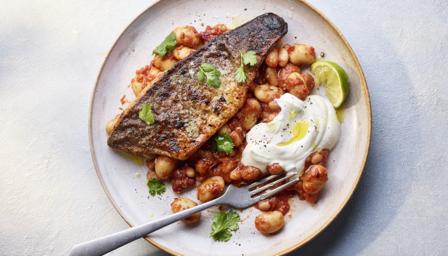 You can also top it with pan-fried fish, such as sea bass fillets. Dust the fish with 1 heaped tablespoon plain flour mixed with 1 tablespoon spice blend and fry in a dash of oil (maybe a knob of butter too) for 2 minutes on each side until golden and cooked through.