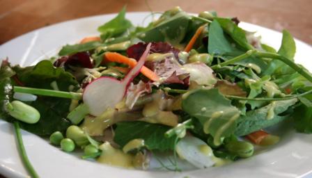 A crunchy salad topped with a zingy dressing makes for a lovely lunch.
