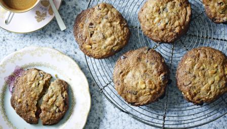 Luxurious fruit, nuts and liqueur make these satisfyingly chewy chocolate chunk cookies ideal for a special occasion.