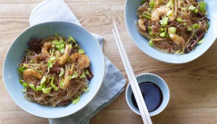 - 80g/2¾oz mung bean (glass) noodles or rice vermicelli, soaked and drained as per packet instructions