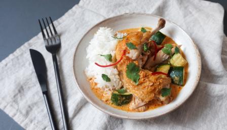 Using chicken legs in this Thai curry ensures maximum flavour, as the pressure cooker quickly extracts all the rich gelatine from the bones.