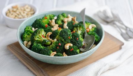 Toasted cashew and chilli broccoli salad with sesame soy dressing