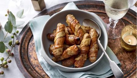 These vegetarian pigs-in-blankets are sweet, sticky and irresistible. Use a plant-based spread if you’re vegan.