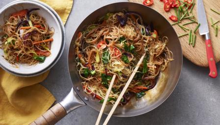 Crunchy, fiery and full of umami flavours – these veggie Singapore noodles are mouth-wateringly good.