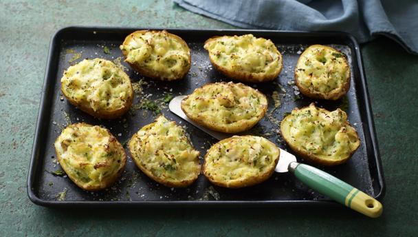 Preheat the oven to 200C/180C Fan/Gas 6. Prick the skin of the potato a couple of times all over – this stops it from bursting whilst cooking.