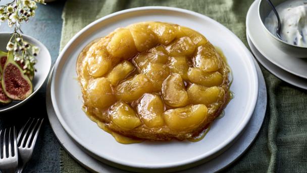 Lift the pastry onto the rolling pin and drape it over the tin.