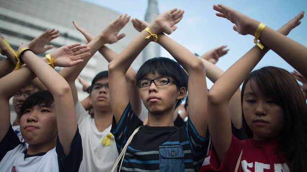 In 2012, Wong organised large-scale demonstrations: a handful of students went on hunger strike and tens of thousands of people flooded the plazas outside Hong Kong's government headquarters. By 2014 – the year of his first arrest – Wong was a leading figure in the so-called Umbrella Revolution, a series of protests that swept across Hong Kong after China announced it would be screening candidates in the territory's own coming elections. Now 20, Wong is the secretary general of Demosisto, a pro-democracy political party he co-founded last year.