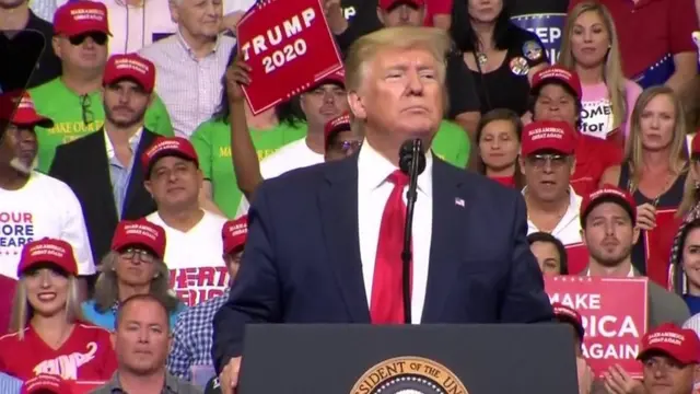 Bwana Trump yafatiyeho n'akanya ko kwiyamiriza abo mu mugambwe w'abademocrate, yagiriza ko bariko bagerageza gutabagura igihugu.