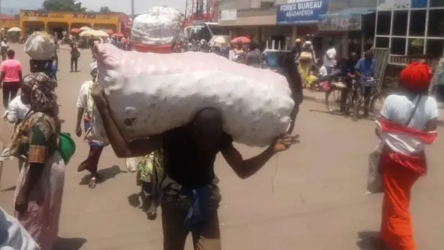 Ati: "Ni ukuvuga ngo abakongomani bo hakurya nibo basa n'abatugize [niho bajyana ibicuruzwa]. Ubu rero turi kwambuka nta kibazo urabona ko n'imifuka ifunze turi kuyambutsa".