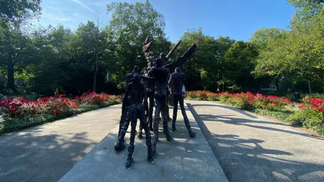 Yicaye mu gitutu c'urwibutso rw'ubuja muri Oosterpark i Amsterdam, Linda Nooitmeer yibuka igihe umukuru w'igisagara Femke Halsema yasaba imbabazi kubera uruhara ubutegetsi bw'igisagara bwagize mu rudandazwa bw'abaja.