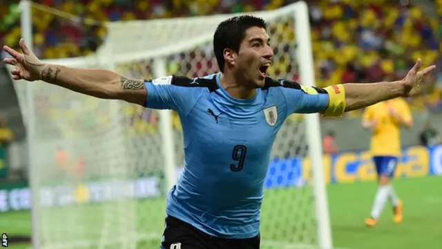 Luis Suarez yatsinze cya kabiri cyatumye ikipe ya Uruguay inganya na Brasil 2-2 draw with Brazil kuva aho arangirije ibihano byo kudakina mu mikino mpuzamahanga amaze kuruma umukinnyi mu gikombe cy'isi cyo muri 2014.