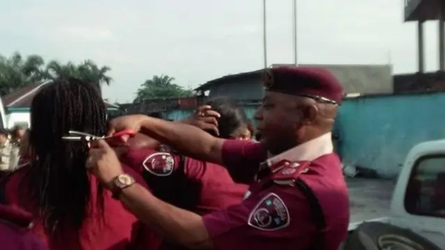 Umupolisi wo mu gisata kijejwe umutekano ku mabarabara muri Nigeria, yahamagajwe kubera yahanishije mugenziwe w'umugore, kumumwa imishatsi.