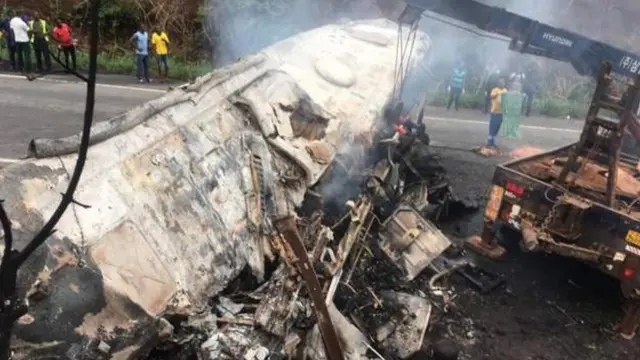 Polisi ya Ghana itangaza ko bisi imwe yahise ishya nyuma yo kugongana.