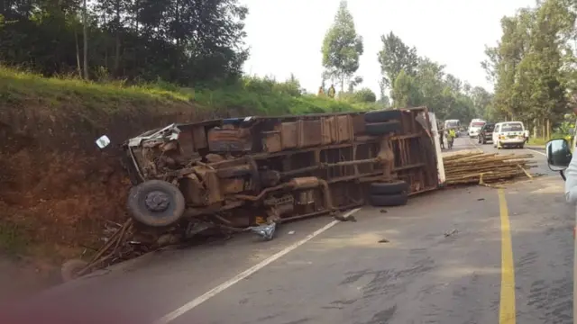 Iyi modoka yo mu bwoko bw'ikamyo ya Mitsubishi Fuso yari yikoreye ibiti yerekeza i Kigali, iyi mpanuka yabereye mu murenge wa Rugarika mu karere ka Kamonyi.