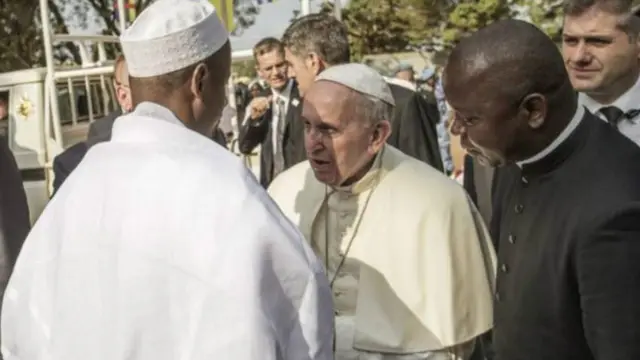 Papa yagiye kuramutsa aba isilamu bari mu gace basa nk'aho biyugaraniyemwo kazwi kw'izina rya 'PK 5' mu muji wa Bangui.