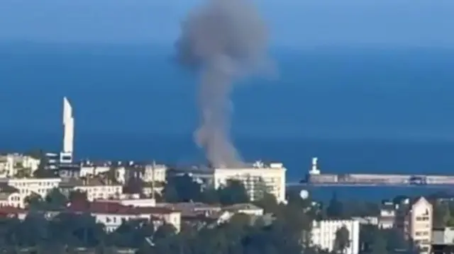 Kare kuwa gatandatu amashusho yerekanye umwotsi mu gace k’umujyi wa Sevastopol aho amato y’abarusiya ahagarara. BBC ntiyari yabashije kugenzura byigenga ayo mashusho.