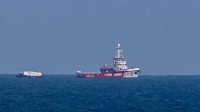 Hagati aho ubwato butwaye amatoni 200 y'ivyo kurya buraboneka uri ku nkengera ya Gaza bukaba ari ubwa mbere bwo kugerageza kwugurura inzira yo mu mazi yo kujana imfashanyo.
