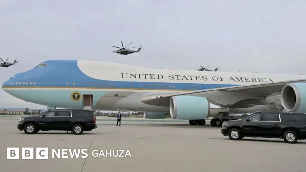 Indege ya Air Force one irerura umukuru w'igihugu ca Amerika Joe Biden.