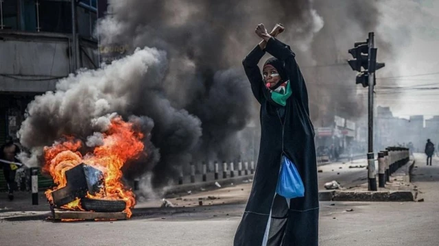 Igipolisi ciriwe gihanganye n'abari muri iyi myiyerekano ku mugwa mukuru Nairobi no mu bindi bisagara inyuma y'umwaka umwe wari urangiye neza na neza habaye imyiyerekano yo kwiyamiriza reta yiwe mu 2024.